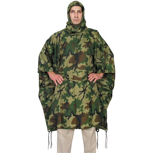 - Woodland Camouflage Adult Waterproof Rain Poncho - 57 x 88, Rip-Stop Emergency All-Weather Cover